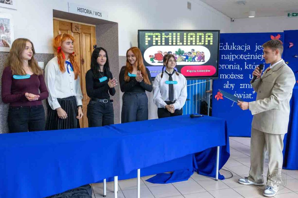 Uroczystość rozpoczął występ młodzieży, która w humorystyczny sposób, nawiązując do popularnego teleturnieju „Familiada”, zaprezentowała codzienne życie szkoły oraz swoich nauczycieli.