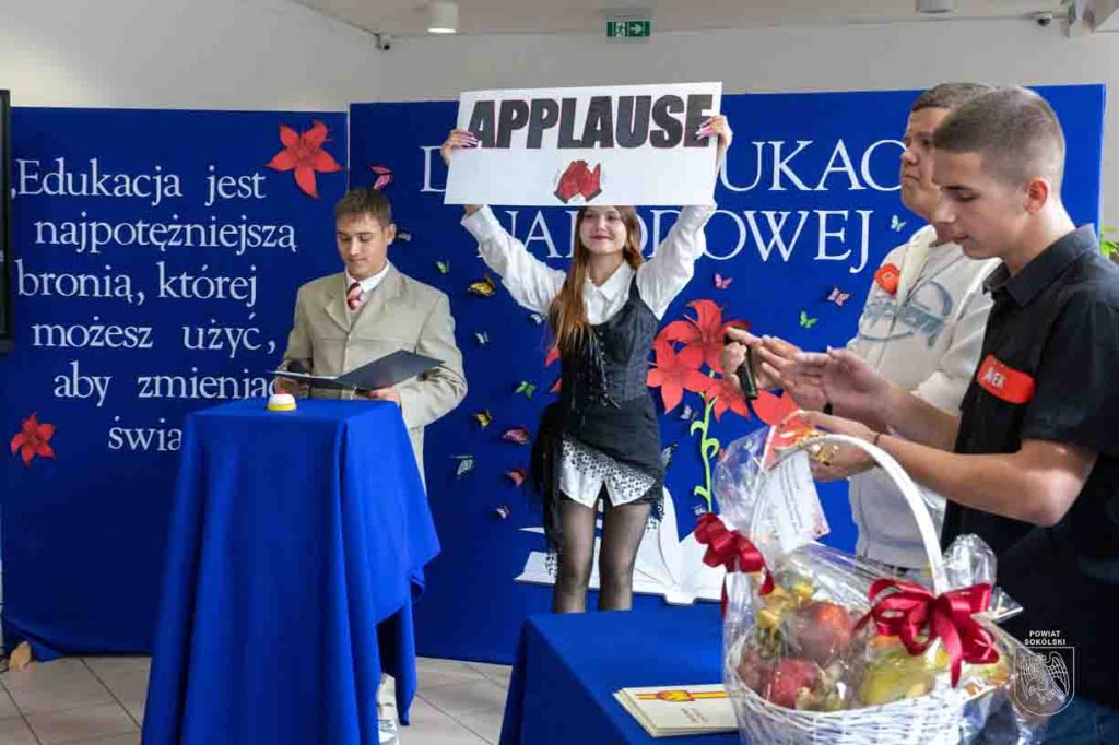 Dziś w Zespół Szkół Zawodowych im. Elizy Orzeszkowej w Sokółce odbyła się uroczysta akademia z okazji Dnia Edukacji Narodowej. To szczególny dzień w roku szkolnym, w którym cała społeczność szkolna składa wyrazy wdzięczności nauczycielom i pracownikom oświaty za ich codzienną pracę, zaangażowanie i poświęcenie w wychowaniu oraz kształceniu młodzieży.