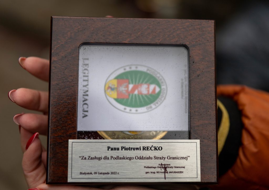 Zbigniew Awdziej, komendant Placówki Straży Granicznej w Kuźnicy, w imieniu Andrzeja Jakubaszka, komendanta Podlaskiego Oddziału Straży Granicznej, wręczył medal Staroście Sokólskiemu Piotrowi Rećko. Przyznał, że to wyróżnienie stanowi to dowód wdzięczności za wieloletnią współpracę, okazane zrozumienie i nieocenioną pomoc otrzymywaną ze strony Starosty.