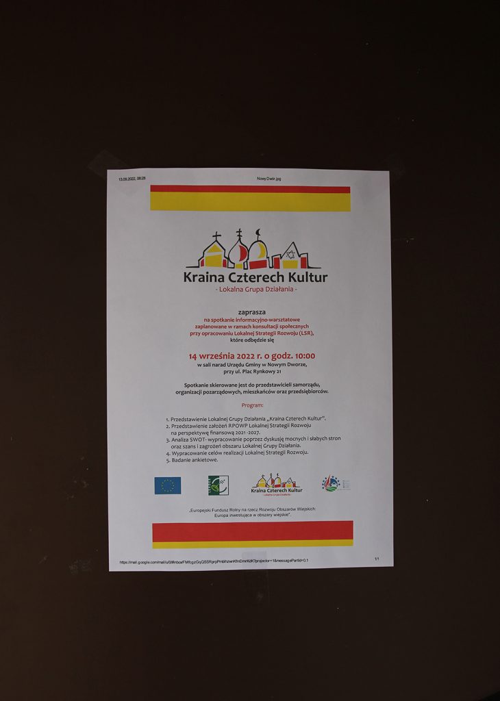 – Cel działań LGD „Kraina Czterech Kultur” to wspieranie lokalnego rozwoju na obszarach gmin członkowskich. Wskaźnikiem osiągnięcia tego celu jest realizacja planu włączenia społeczności, w szczególności przygotowanie Lokalnej Strategii Rozwoju – podczas spotkania informacyjno-warsztatowego w Nowym Dworze mówił Daniel Supronik.