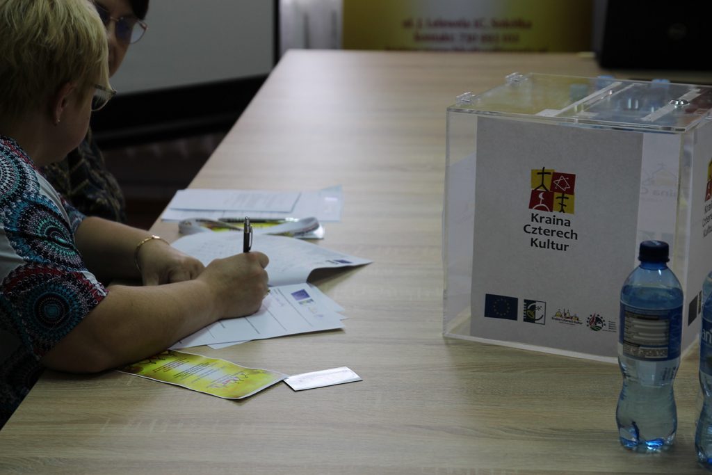 Uczestnicy spotkania wypełnili ankiety dotyczące problemów, potrzeb i uwarunkowań występujących na obszarze objętym LGD. Ankiety można też wypełnić w wersji elektronicznej. Są dostępne do pobrania na stronie LGD „Kraina Czterech Kultur”.