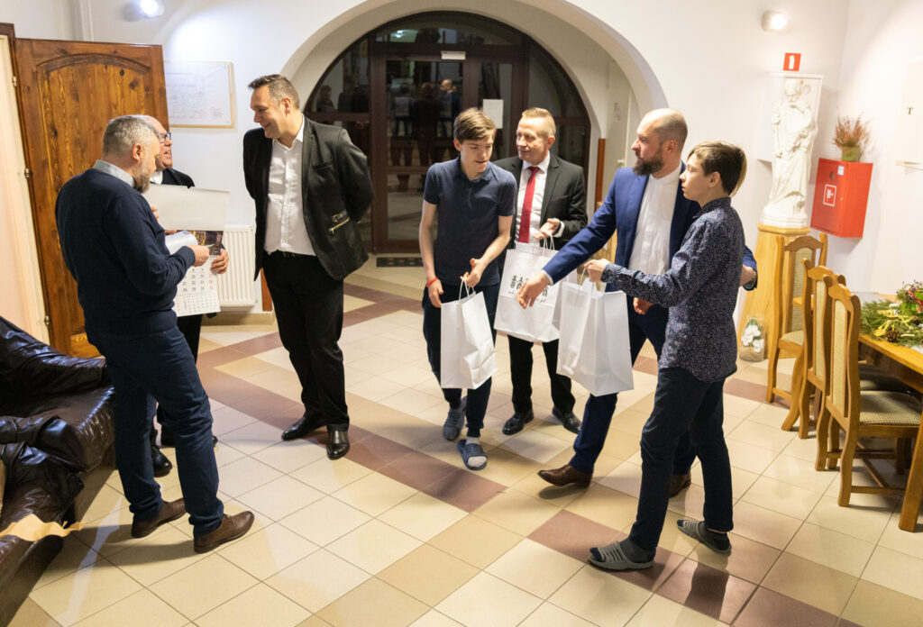 Po spektaklu zebrani podzielili się opłatkiem składając sobie świąteczne życzenia. Wychowankom ośrodka Starosta i Wicestarosta wręczyli drobne prezenty, a w ręce opiekunów trafiły kalendarze.