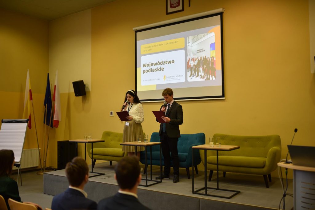 7 listopada 2022 r., w auli I Liceum Ogólnokształcącego w Białymstoku odbyło się wojewódzkie spotkanie konsultacyjne Rady Dzieci i Młodzieży Rzeczypospolitej Polskiej przy Ministrze Edukacji i Nauki. Uczestniczyli w niej uczniowie z Zespołu Szkół Zawodowych im. Elizy Orzeszkowej w Sokółce i Zespołu Szkół w Sokółce wraz z opiekunami.