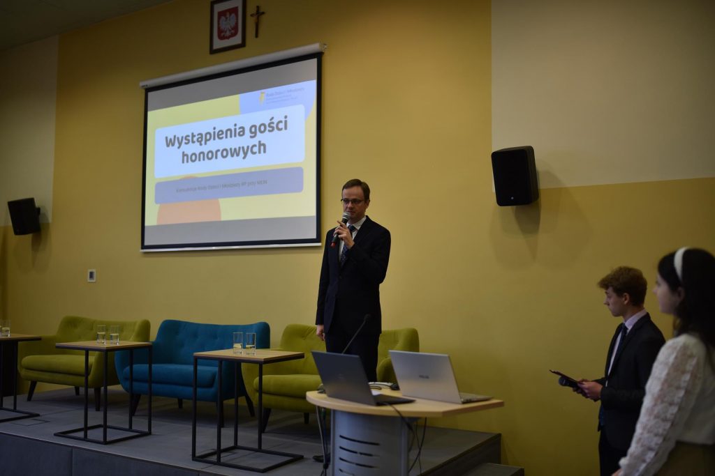 Uczestnicy konsultacji obejrzeli prezentację dotyczącą działalności Rady, wysłuchali dyskusji z udziałem Beaty Pietruszki, Podlaskiego Kuratora Oświaty i Tomasza Madrasa, Wicewojewody Podlaskiego dotyczącej m.in. roli nowoczesnych technologii i wizji szkoły XXI wieku.