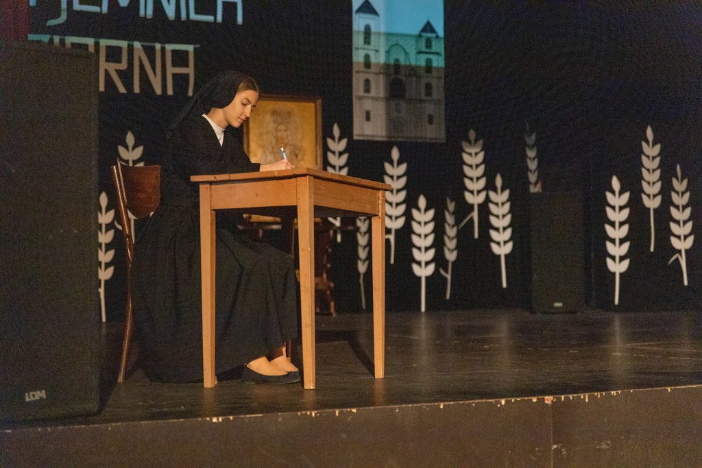 Po mszy świętej członkowie scholi oraz wychowankowie rodzinnego domu dziecka prowadzonego przez siostry zaprezentowali spektakl pt. „Tajemnica ziarna”. Dotyczył początków działalności zgromadzenia w Polsce i losów pierwszych sześciu sióstr, które przyjechały do Różanegostoku z Włoch.