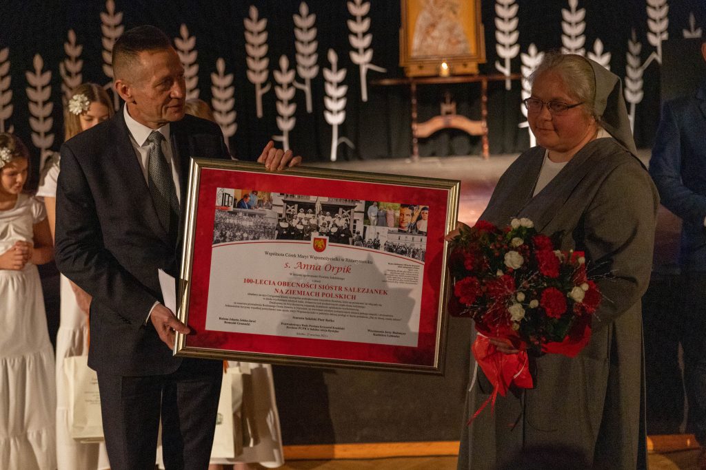 – Przed wiekiem Bóg w swojej nieskończonej mądrości zechciał, by Córki Maryi Wspomożycielki rozpoczęły działalność w naszej ojczyźnie. Dziś z całego serca dziękujemy za te wszystkie lata trudnej, wyczerpującej pracy, przynoszącej tak słodkie owoce. Siostry są dla nas świadectwem nieskończonej miłości Chrystusa, który powiedział: „Pozwólcie dzieciom przychodzić do mnie” – wyraził zgromadzeniu wdzięczność Jerzy Białomyzy, Wicestarosta Sokólski.